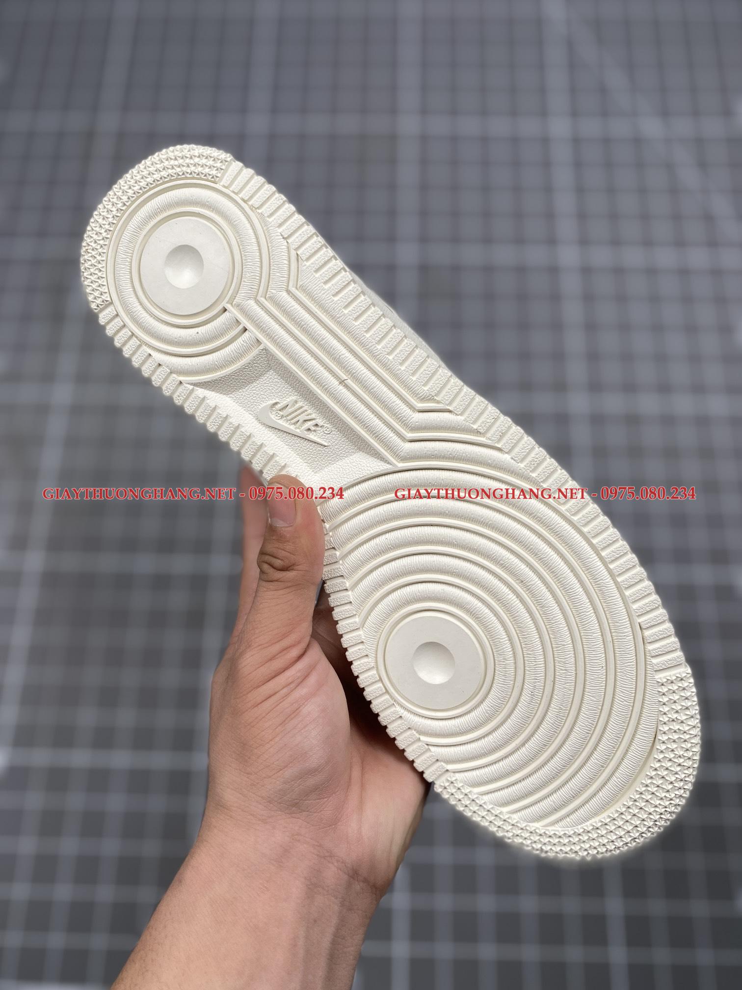 Chất liệu sản xuất là da PU, đế là chất liệu tổng hợp với nhiều đường cắt vòng đặc trưng của Air Force 1